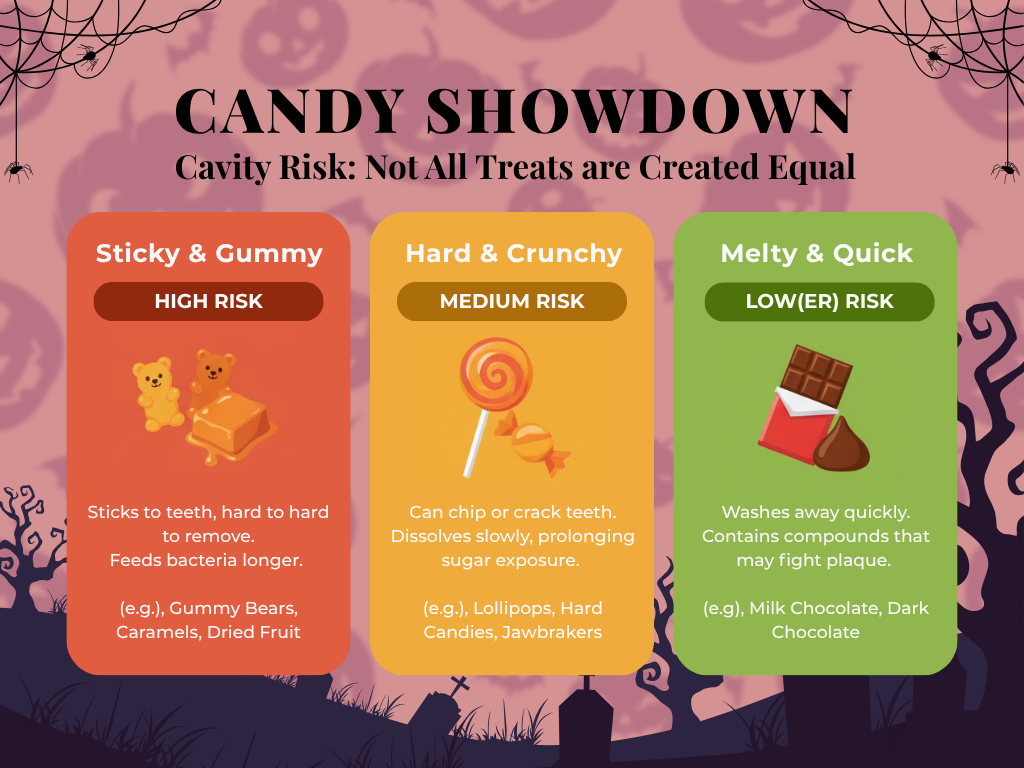 Lisa’s choice that evening—sampling treats while on-the-go—mirrors what many adults do during Halloween. It seems harmless: a bite of caramel here, a chew of gummy candy there. But sticky and acidic candies linger, bathing enamel in sugar and acid longer than chocolate or fast-dissolving sweets.