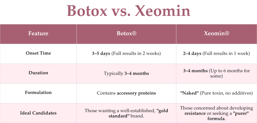 Both are FDA-approved neuromodulators that interrupt the signal between nerves and muscles. Botox includes a protective protein. Xeomin is considered “naked,” meaning it has no additives. For some patients, that purity matters. For others, Botox’s long track record feels reassuring.